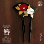 「花しおり」髪飾り 簪 かんざし バチ型 黒台に蒔絵の赤白椿 ツバキ 着物 小紋 紬 振袖 訪問着 留袖 成人式 付下げ 浴衣 レディース 日本製 fj603s