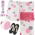 浴衣 レディース セット ピンク 水玉 蝶々 レトロ 浴衣 帯 下駄 婦人 女性用 キュート コーデ済 和服 和装 ゆかた 3点セット