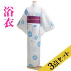 浴衣レンタル 浴衣レディースセット 浴衣 レディース 3点セット NT-y010 白地に水色 水玉&花 浴衣セット 往復送料無料