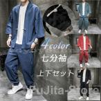 甚平メンズ夏上下セット浴衣風作務衣ストライプ七分袖和式祭り男性用秋半被半纏部屋着ビッグシルエット花火大会ゆったり和風ロングパンツ