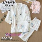 購入15%-30%OFF パジャマ レディース ルームウェア 上下セット 部屋着 花柄 半袖 和風パジャマ 浴衣 甚平 前開き 吸汗 通気 肌に優しい 二重 30代 50代 大きいサイズ20代 40代 ガーゼ 麻 綿