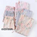 【20%OFFクーポン〜】春夏秋 レディース パジャマ 和風 和服 ルームウェア ガーゼ 綿 薄手 クレープ 気持ち良い Vネック 半袖 ロングパンツ 上下セット ホテル 浴衣 女の子 吸湿 通気 寝巻き 部屋着 甚平 可愛い お風呂上り ゆったり 旅行