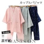 甚平風 パジャマ レディース メンズ ルームウェア ユニセックス 甚平 作務衣 カップルペア 2点セット 上下 寝巻き 浴衣 和風 和柄 半袖 ナイト