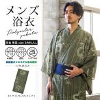 男性 メンズ浴衣 単品 吸水速乾 吸汗速乾 ポリエステル浴衣「細縞に雲龍 老竹色」S/M/L/LL 男性浴衣 男性用浴衣 ゆかた yukata(メール便不可)