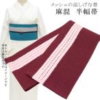 半幅帯 浴衣 女性 半巾帯 日本製 ゆかた 着物 夏着物 帯 半幅 麻 夏 帯 メッシュ 縞 小豆×ピンク skc0207-bob23