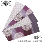 半幅帯 正絹 博多半幅帯 博多織 博多帯 リバーシブル 紫 丸菊 小紋 紬 浴衣 新品
