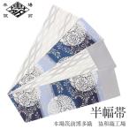 半幅帯 正絹 博多半幅帯 博多織 博多帯 リバーシブル 紺青 丸菊 小紋 紬 浴衣 新品
