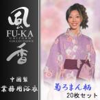 中国製カラー浴衣 風香シリーズ 業務用仕様 女性用 菊ろまん柄 20枚セット