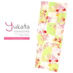 (Prices down2)浴衣 レディース 単品 「白地 黄緑、矢羽根 花々」 フリーサイズ (メール便不可)ss2512ykl15