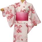 浴衣 2点セット リボン型作り帯 レディース浴衣 フリーサイズ x25 | 帯 作り帯 大人 婦人 レディース 綿 綿浴衣 yukata ゆかた リボン 帯浴衣セット 簡単 部屋着 レトロ モダン 手鞠 市松 スイート 蝶 あじさい コスモス 椿 撫子 萩 薔薇 朝顔 牡丹 菊 桜 八重桜 木蓮