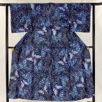 中古 浴衣 綿 ネイビー 蝶 和装 呉服 和服 きもの レディース 女性