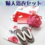 浴衣 レディース セット4点セット 白地 赤 薔薇 蝶 ゆかた帯 下駄 巾着 婦人 ゆかた 浴衣セット BFセール
