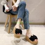 サンダル ミュール レディース 9センチヒール 9cm 歩きやすい ウェッジヒール ブラック シルバー 大きいサイズ 小さいサイズ つっかけ キラキラ 蝶結び ラメ