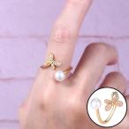 【04. 淡水パール フォークリング】指輪 蝶 フリーサイズ レディース 韓国風 浴衣 成人式 初詣 振袖 袴 卒業式 ゴールド シルバー 国内発送