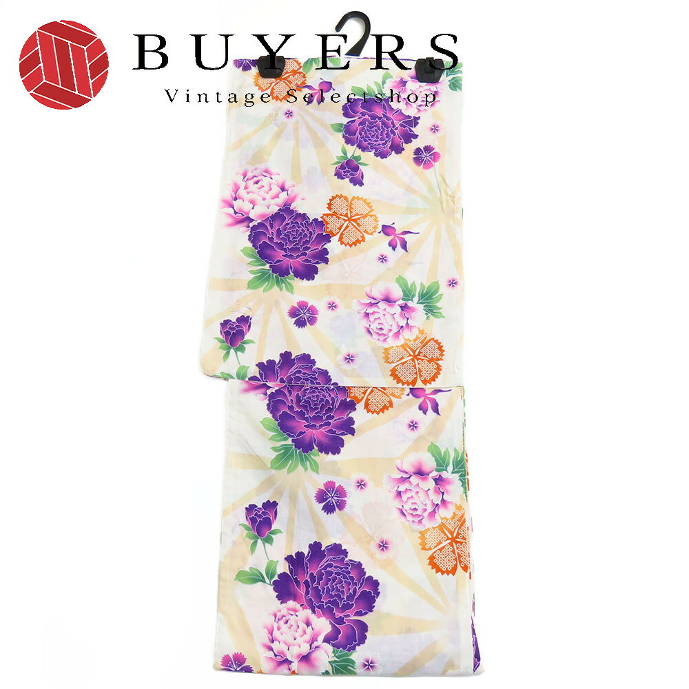 【20%OFF!!楽天スーパーSALE!!】【中古】 浴衣 未使用展示品 綿 ベージュ系 紫 マルチカラー ぼたん 金魚 大人可愛い 和装 呉服 和服 きもの レディース 女性