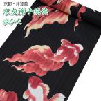 浴衣 反物 レディース ゆかた 生地 黒 赤金魚 女性用 高級 夏着物 井登美 イトミ 京友禅 優華壇 手染め 耳あり 耳付き お誂え