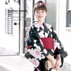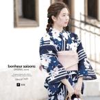 浴衣 レディース 3点セット (浴衣/兵児帯/下駄) bonheur saisons ボヌールセゾン 濃紺 ネイビー 白 青 ピンク 椿 金魚 桜 縞 ラメ 綿 フリー 送料無料 古典柄
