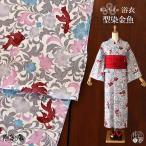 浴衣 レディース 撫松庵 東レ セオα 型染金魚 白 ホワイト グレー 夏着物 夏小紋 花柄 ゆかた 仕立て上がり 洗える プレタ 女性 販売 単品 CEOα