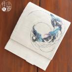 [夏帯] 夏名古屋帯 流水金魚 (麻/白鼠/KK-NT-004) 麻 リネン 日本製 名古屋帯 京袋帯 京袋名古屋帯 きんぎょ 流水模様 浴衣帯 単衣 浴衣 着物 召しませ花