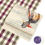 \WeekendSale開催中!/[夏帯] 夏名古屋帯 金魚 (麻/オフシロ/紺) 麻 リネン 日本製 名古屋帯 仕立て上がり 京袋帯 京袋名古屋帯 金魚 幾何学模様 友禅 夏帯 夏なごや帯 浴衣帯 レディース 女性 夕涼み 涼しい 夏祭り 花火大会 単衣 浴衣 着物 召しませ花 (tn407)