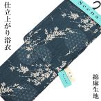 仕立て浴衣 レディース -2C- Scena 綿麻 Free-Size 納戸色/雪輪に麻の葉