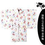 本染 注染 こども浴衣 雪輪なでしこ 白地 日本製 女児100センチ 3・4歳用