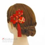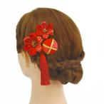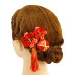 髪飾り 成人式 つまみ細工 赤 振袖 袴 浴衣 夏祭り 花火大会 3点セット 玉飾り ちりめん 房付き 鹿の子 ヘアアクセ かんざし 卒 No.9-3296