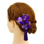 髪飾り 成人式 つまみ細工 振袖 袴 浴衣 夏祭り 花火大会 3点セット 紫 玉飾り ちりめん 房付き 鹿の子 ヘアアクセ かんざし 卒 No.9-3293