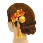 髪飾り 成人式 振袖 袴 花 浴衣 夏祭り 花火大会 5点セット オレンジ ちりめん 玉飾り ゴールド 房付き 鹿の子 ヘアアクセ かん No.9-3634
