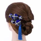 髪飾り 成人式 つまみ細工 振袖 袴 浴衣 夏祭り 花火大会 3点セット 黒 青 玉飾り ちりめん 房付き 鹿の子 ヘアアクセ かんざし No.9-3294