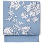 京袋帯 唐草 花 水色 グレー 白 モノトーン JAPAN MODE 着物 お太鼓 仕立て上がり 全通柄