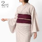 浴衣 2点セット オーガンジー フラワー ピンクグレー 兵児帯 ボルドー レディース モダン 上品 女性用 仕立上がり20代 30代 40代 50代 女性用 浴衣セット