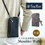 スマホポーチ メンズ 本革 財布 スマホショルダー レザー 牛革 スマホ入れ ミニ お財布ショルダー ポーチ 黒 茶 7030 Troy Bros トロイブロス