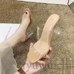 サンダル レディース ミュール 夏 春 ハイヒール クリア太ヒール オープントゥ 歩きやすい パーティー 履きやすい カジュアル 痛くない