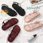 スポーツサンダル シンプル レースアップ風 サンダル レディース 夏 ストラップ 厚底