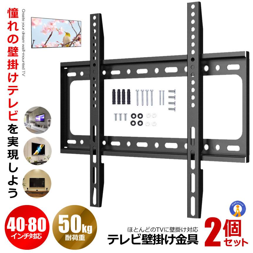 ★10%OFF!楽天スーパーセール★ 2個セット テレビ壁掛け金具 40〜80インチ 極薄型 液晶PCモニタ 小型 固定式 TV壁掛け金具可能 耐荷重50kg 液晶TV 送料無料 4080TEREKA