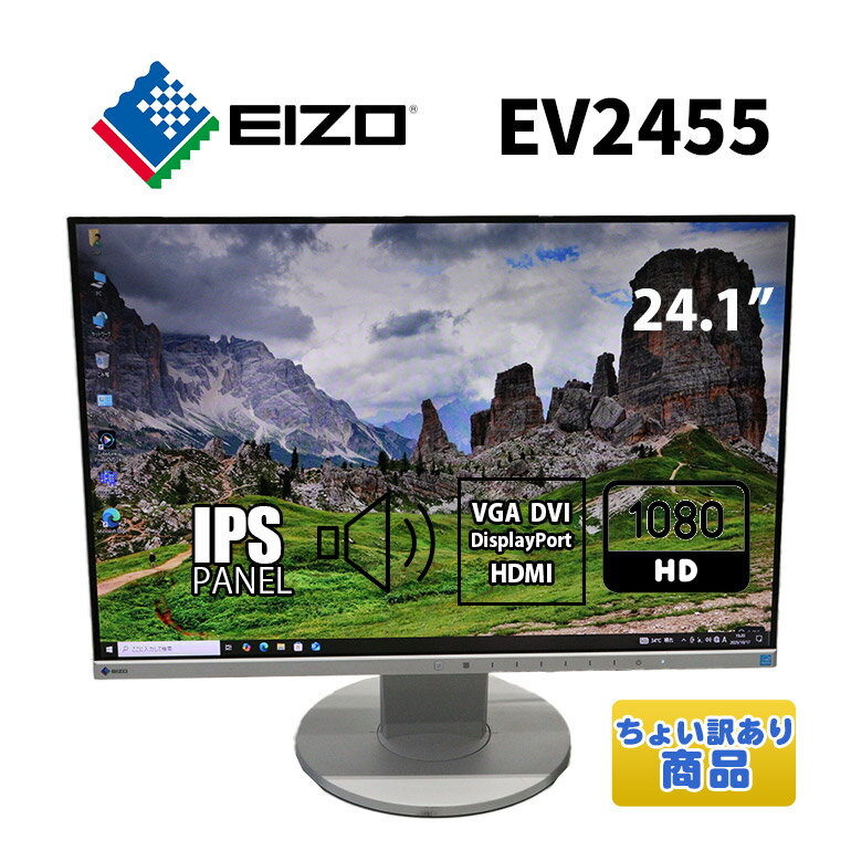 スーパーセール 15%OFF 当日出荷 【中古】 ちょい訳あり モニター EIZO EV2455 24.1インチ ノングレア IPSパネル 解像度1920×1080(フルHD) VGA DVI HDMI DisplayPort USB3.0 スピーカー 30日保証 送料無料(※一部地域を除く) ディスプレイ