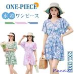 オールインワン ワンピース水着 体型カバー 水着 レデイース 花柄 スイミング 大きいサイズ 半袖 水着ワンピース スイムウェア ビーチ パッド付き 露出控えめ