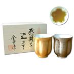 金婚式 お祝い 贈り物 金 湯呑み 夫婦湯呑 ペア 有田焼 熨斗・メッセージカード付き 木箱入り 桜の形が浮かび上がる 金彩