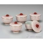 来客用 九谷焼 蓋付 湯呑み 5客セット 赤網 和食器 湯呑み茶碗