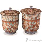 蓋付組湯呑 赤濃牡丹唐草 ペア ( 名入れ有料 退職祝い 定年 湯呑み 湯のみ セット 湯飲み おすすめ セット 清水焼 京焼 結婚 出産 内祝い 引き出物 金婚式 )
