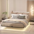 【並行輸入品】Samhapyrom クイーンフローティングベッドフレーム LEDライト付き 高耐久メタルプラットフォームベッド 滑り止めマットレ