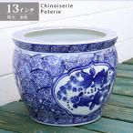 水鉢 大型 陶器 13号 芭蕉 火鉢 鉢カバー プランターカバー プランター メダカ鉢 金魚鉢 鉢 水連鉢 和風 ビオトープ 染付 青花 浮彫魚缶