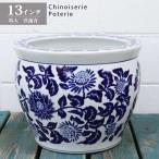 水鉢 大型 白花藍底 特大 13号 火鉢 鉢カバー プランターカバー プランター メダカ鉢 金魚鉢 鉢 水連鉢 和風 ビオトープ
