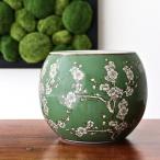 植木鉢 陶器 おしゃれ 和風 丸型 梅柄 火鉢 鉢カバー 穴なし 小型 水鉢 メダカ鉢 金魚鉢 観葉植物 室内 和モダン 花瓶 陶器のミニ火鉢 緑梅