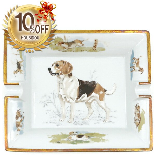 \10%OFFセール/ エルメス HERMES 雑貨 アッシュトレイ 灰皿 ビーグル 陶磁器 ホワイト 白 小物入れ 【箱】【中古】