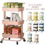 炊飯器 収納ラック ラック 3段 マルチワゴン ハンドル付き かごバスケット 収納 ベビーワゴン キッチンラック キャスター付き 作業台 インテリア