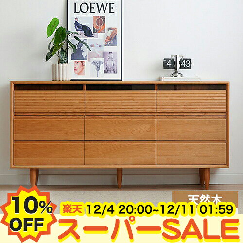 【10%OFF★楽天スーパーSALE】キャビネット チェスト タンス 木製 スリム 箪笥 たんす リビング収納 3段 9杯引き出し 幅150 奥40 高75cm チェリー材 天然木 ガラス天板 サイドチェスト サイドボード リビングボード 本棚 洋服 衣類収納 ナチュラル テレビボード 大容量
