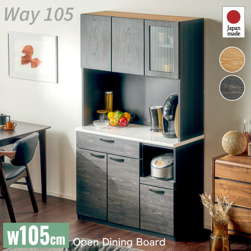 36%off 4日20時から■食器棚 キッチンボード 幅105 オープンボード 日本製 国産 レンジボード おしゃれ シンプル ナチュラル 木目調 スライド収納 可動棚 引出し コンセント付き モイス付き 大容量 食器 収納 棚 レンジ 炊飯器 大型レンジ対応 テトラ