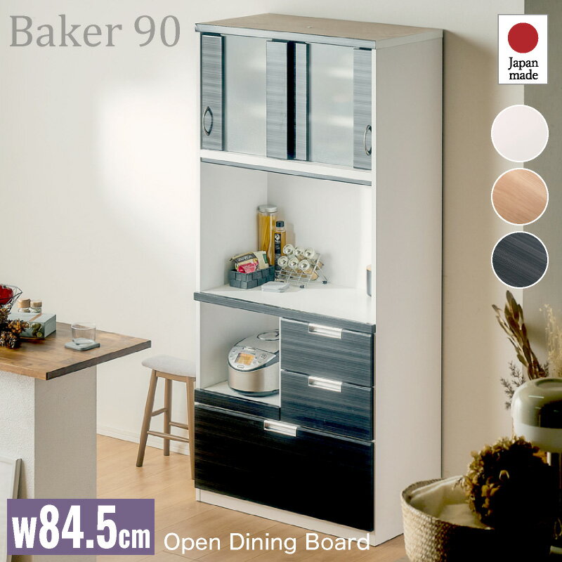 24%OFF 12/4 20時開始◆キッチン 収納 キッチン収納 幅90cm キッチンボード 大型レンジ対応 木目調 北欧 レンジ台 レンジボード 炊飯器 食器 台所 コンセント付き キッチン スライド ガラス扉 引き出し リビング ダイニング 大容量 おしゃれ シンプル ベイカー